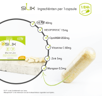 - Silix® Actiflex is een voedingssupplement met Mesoporosil® (gepatenteerd, bio-actief silicium in vaste vorm, optimaal oplosbaar en opneembaar), vitamine C en Mangaan.